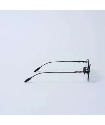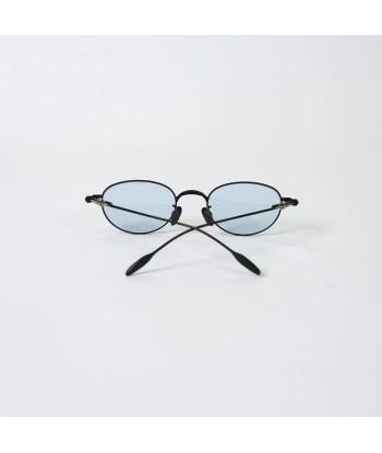 Slim matte-black metal frame with refined oval silhouette—lightweight and timeless