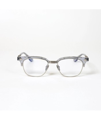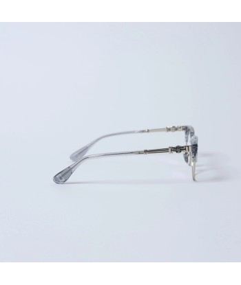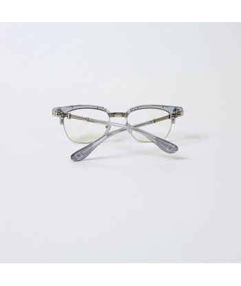 Translucent smoke-gray browline paired with a slim silver rim—clean, modern, and refined